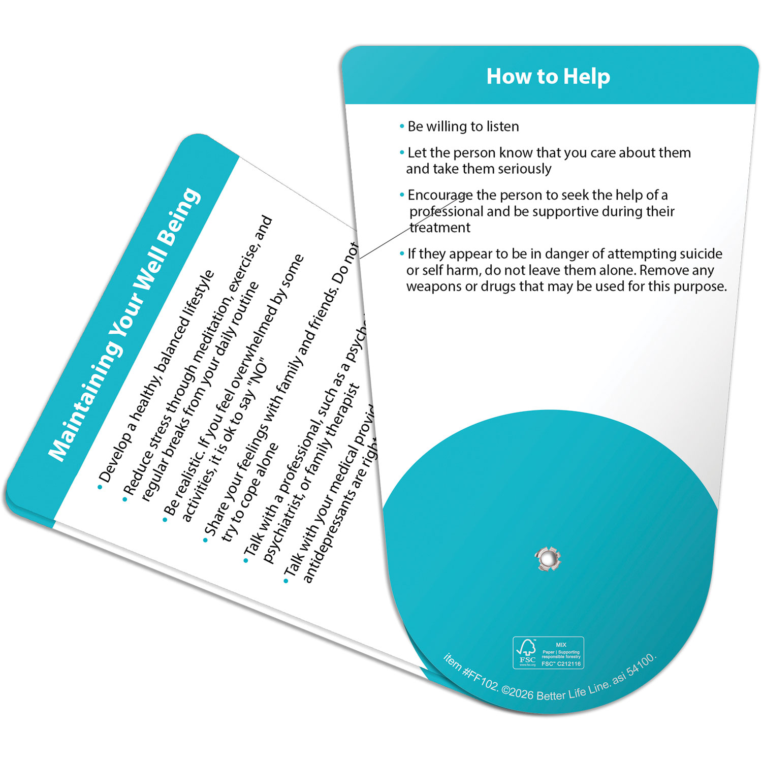 This folding fan provides information on the facts, causes, and symptoms of depression, along with ways to support others and maintain your well-being.