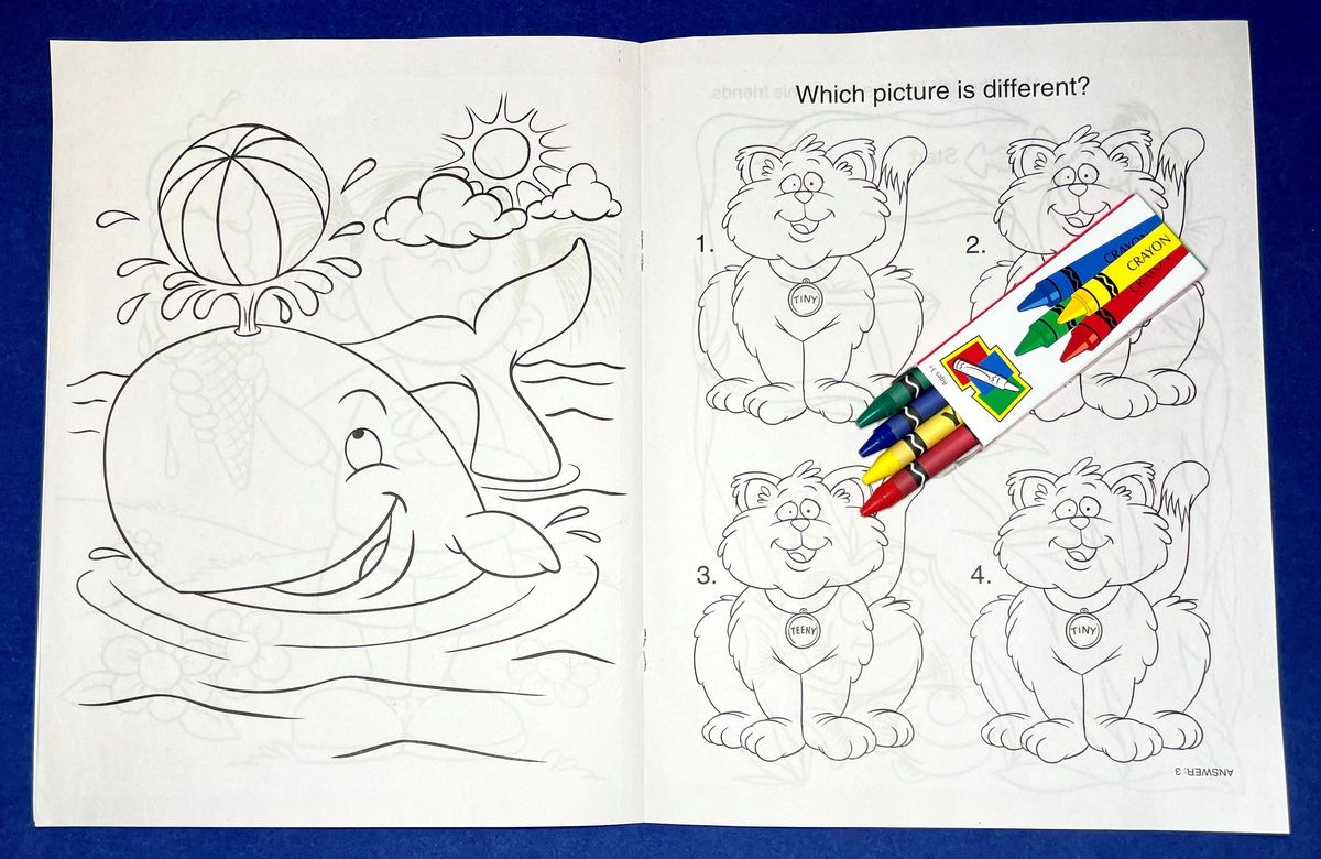 Coloring Book and Crayon Set: A Fun Pack! Make it Easy with the coloring book conveniently packaged with a 4-pack of crayons in a sealed poly bag. No assembly required.