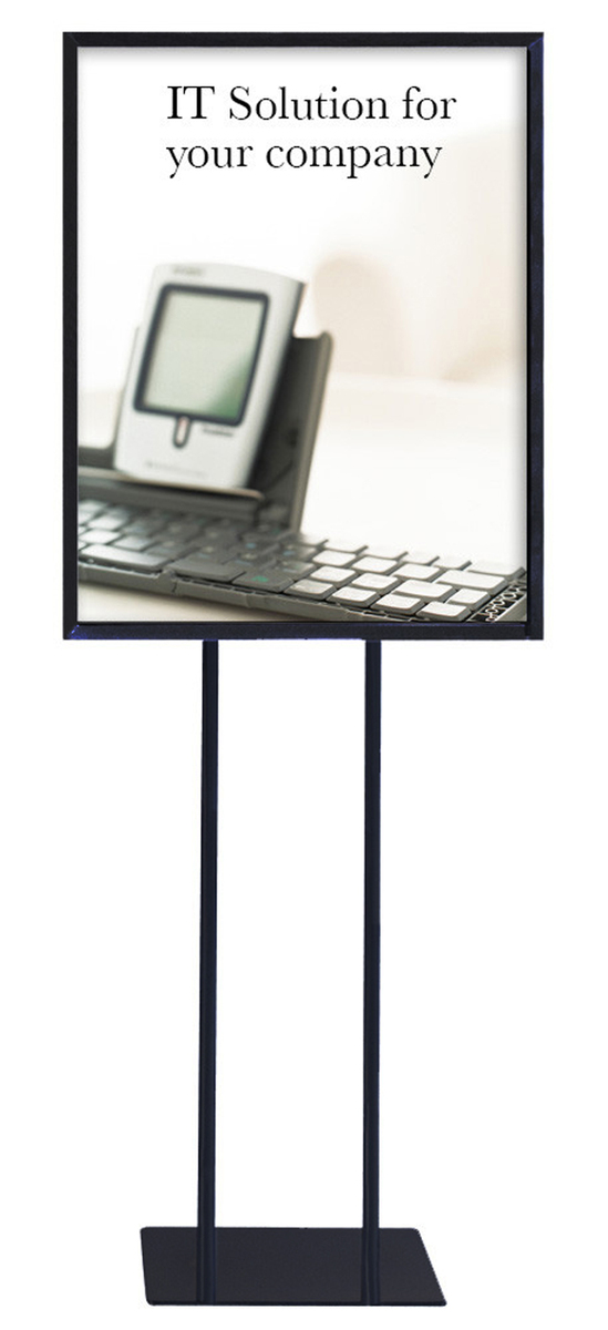 These 22"x28" poster display stands features a 1/4" top loading slot that accepts foam core boards and styrene signs. They are made out of chrome and are perfect for casinos, trade shows, displays and directional signs. Stand is 60" tall, graphics must be mounted to 1/4" board or 040 Styrene. This is for the Print Only.