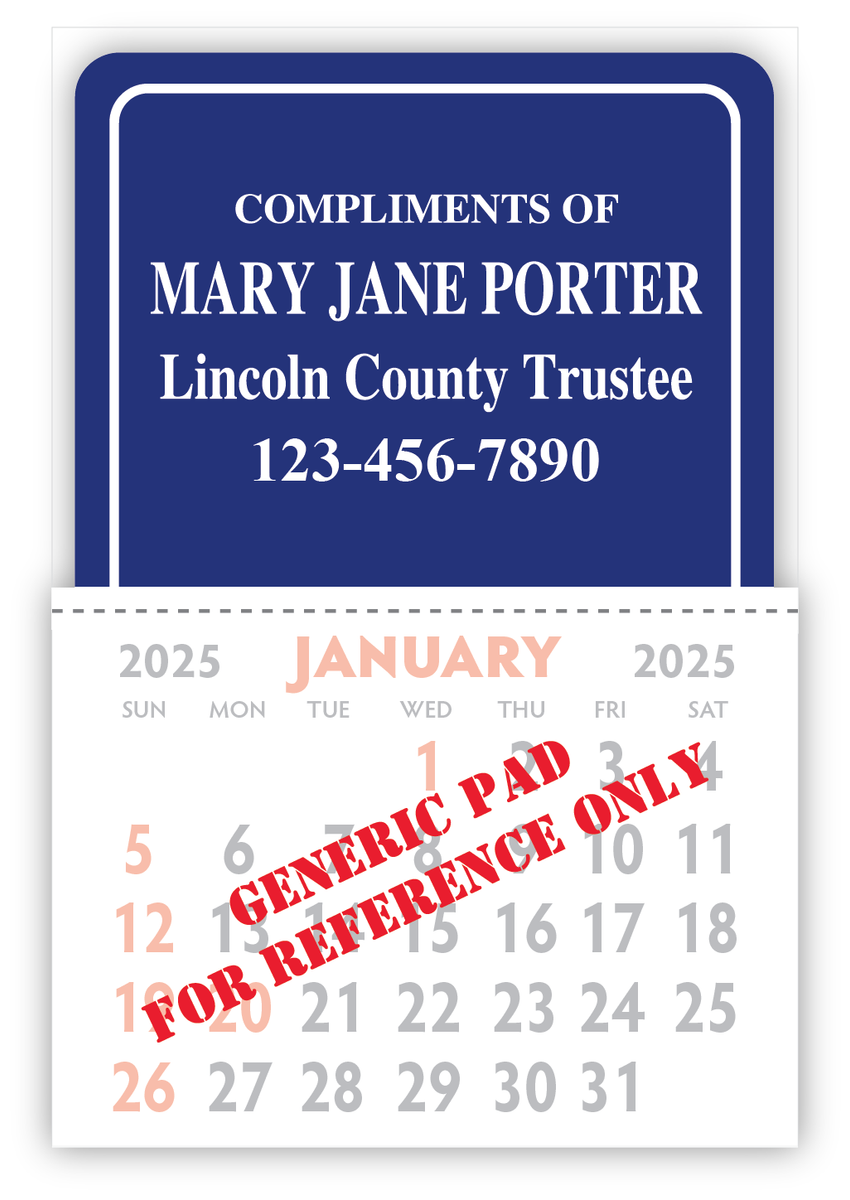 Featuring a custom cut, traditional rectangle imprint area. All Kwik-Stik calendars have full, removable adhesive backs for clean removal and quick clean-up. Quality, hand-sewn 13-month two-color calendar pad. Free presentation box for orders over 500 pieces. 100% made in the USA!