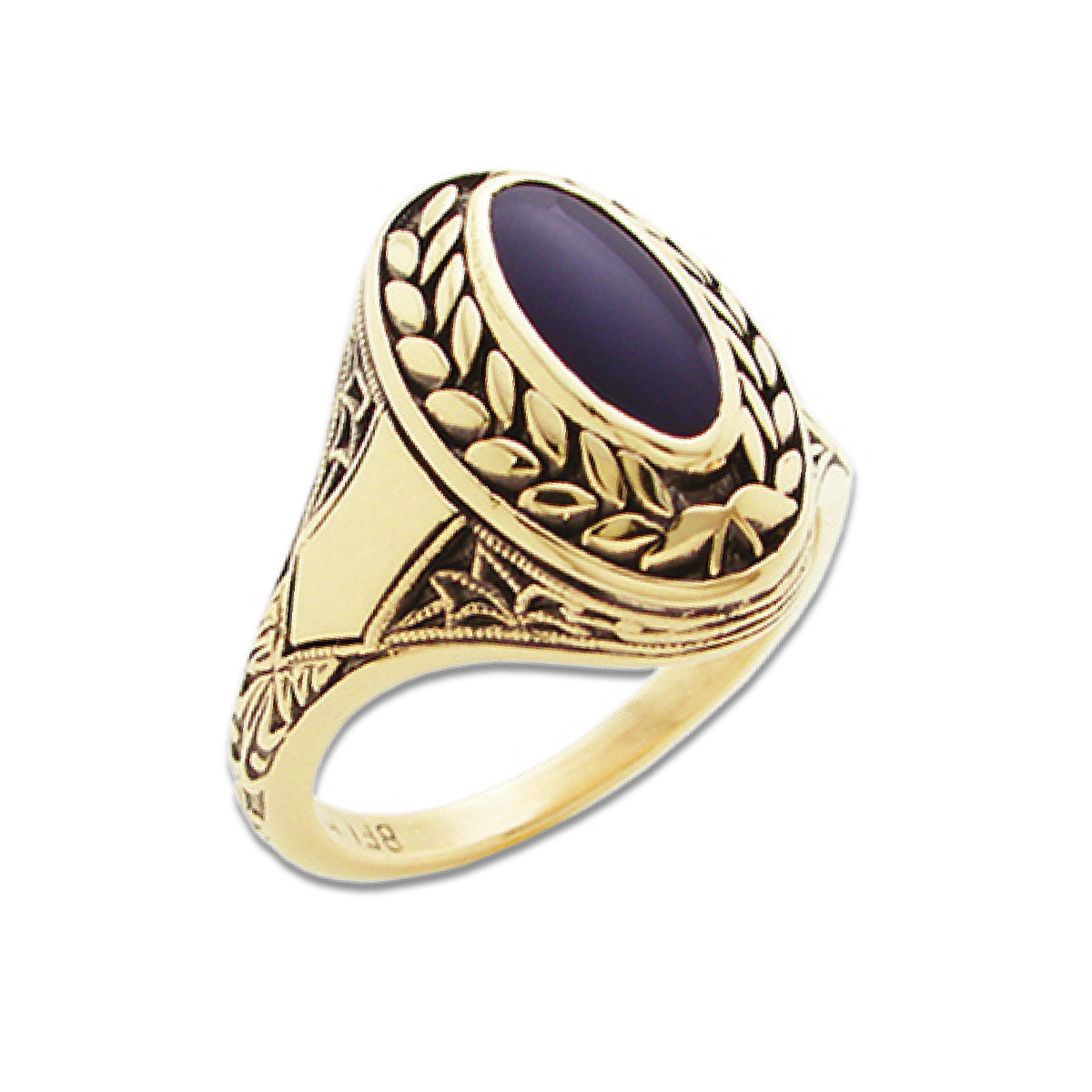 Stock Series Women's Collegiate Ring (Fancy Shank) - Ranging from Service Excellence to National Champions offer a diverse line of stock award rings. Mix and match bezels and shanks within the same ring design to achieve the look and detail desired. Contact our sales team for additional stock designs that maybe available. Collegiate ring with 10x5 center stone, fancy shanks, and will hold up to 3 point stones around bezel.